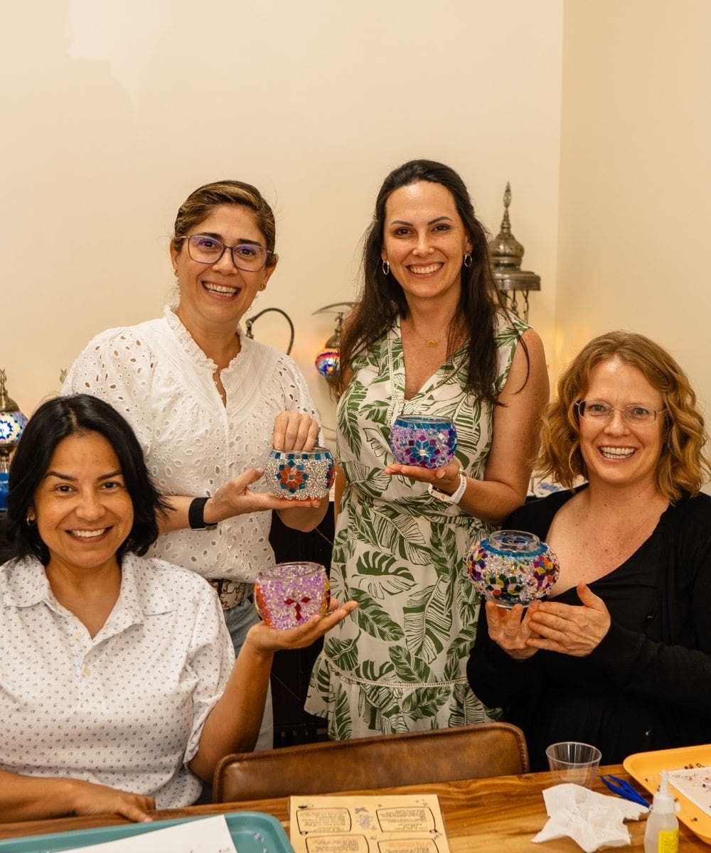 From birthdays and bridal showers to bachelorette parties or neighborhood gatherings, our mosaic lamp-making classes combine creativity and connection. In this interactive glass lamp workshop, you and your guests will design personalized Turkish mosaic lamps using colorful glass tiles โ transforming the experience into both a cherished memory and a beautiful keepsake.